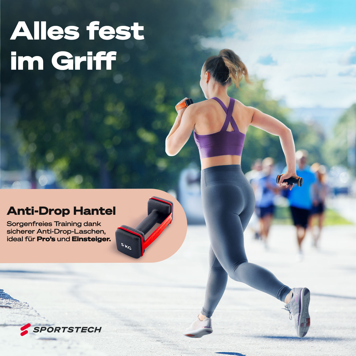 Umfassen Sie das Griffstück der Hanteln JEDERZEIT mit festem Griff!