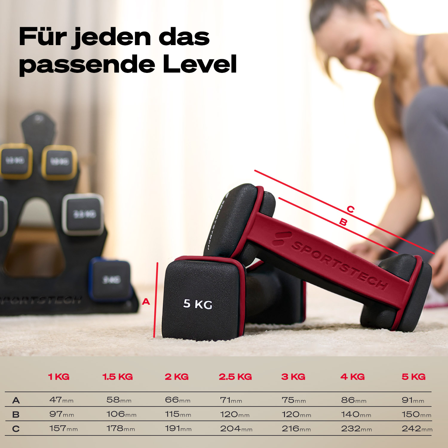 Wenn Sie sich in Bezug auf Gesundheitsprobleme unsicher sind, konsultieren Sie immer einen Arzt vor der Verwendung der Hanteln.