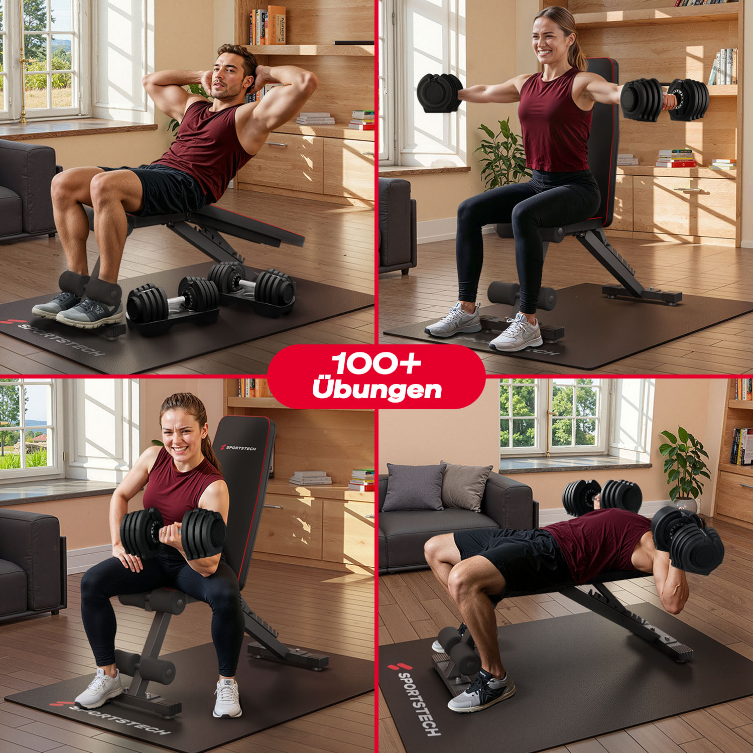 - Gewicht wird über den verstellbaren Hantelgriff in Sekunden eingestellt