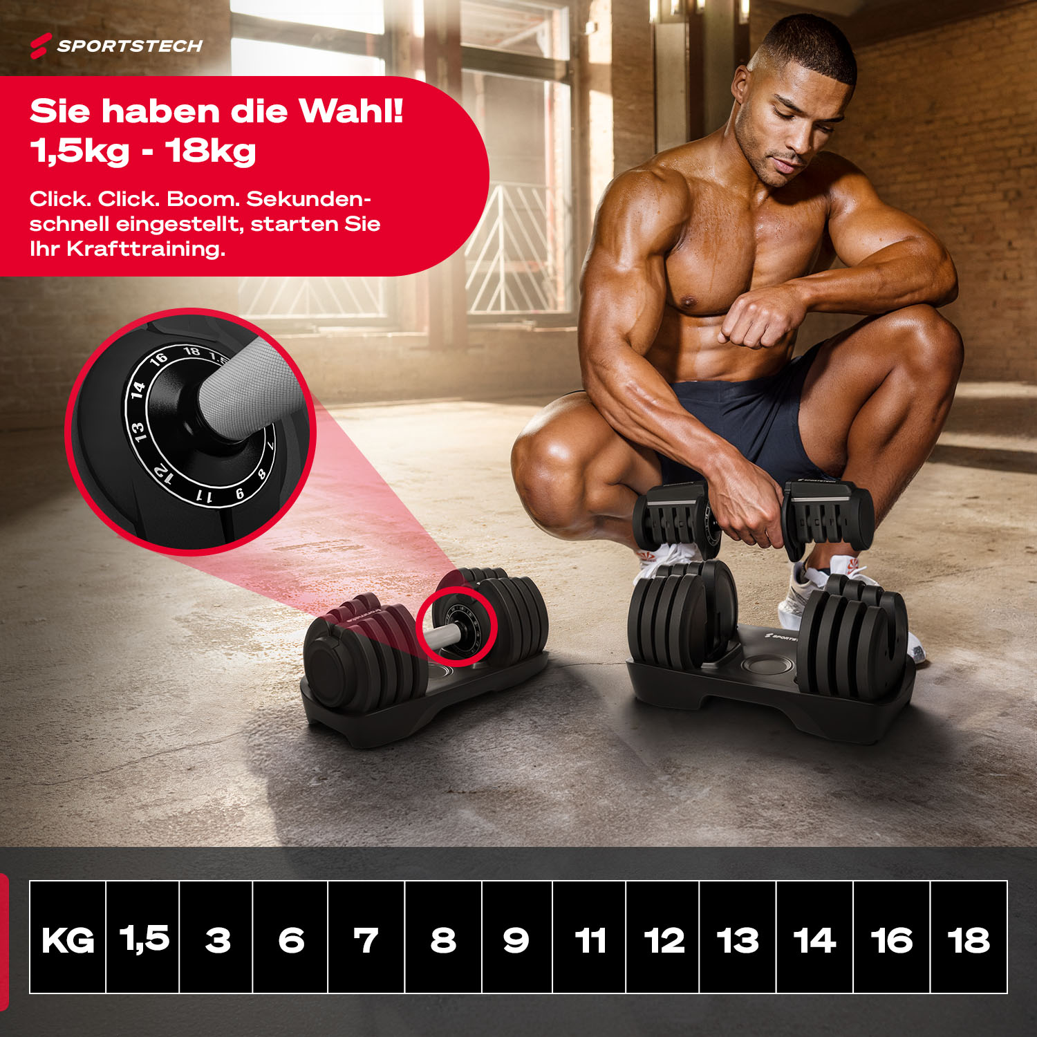 Bei der 18 kg Variante stehen 12 Gewichtsstufen bis 18 kg zur Verfügung.