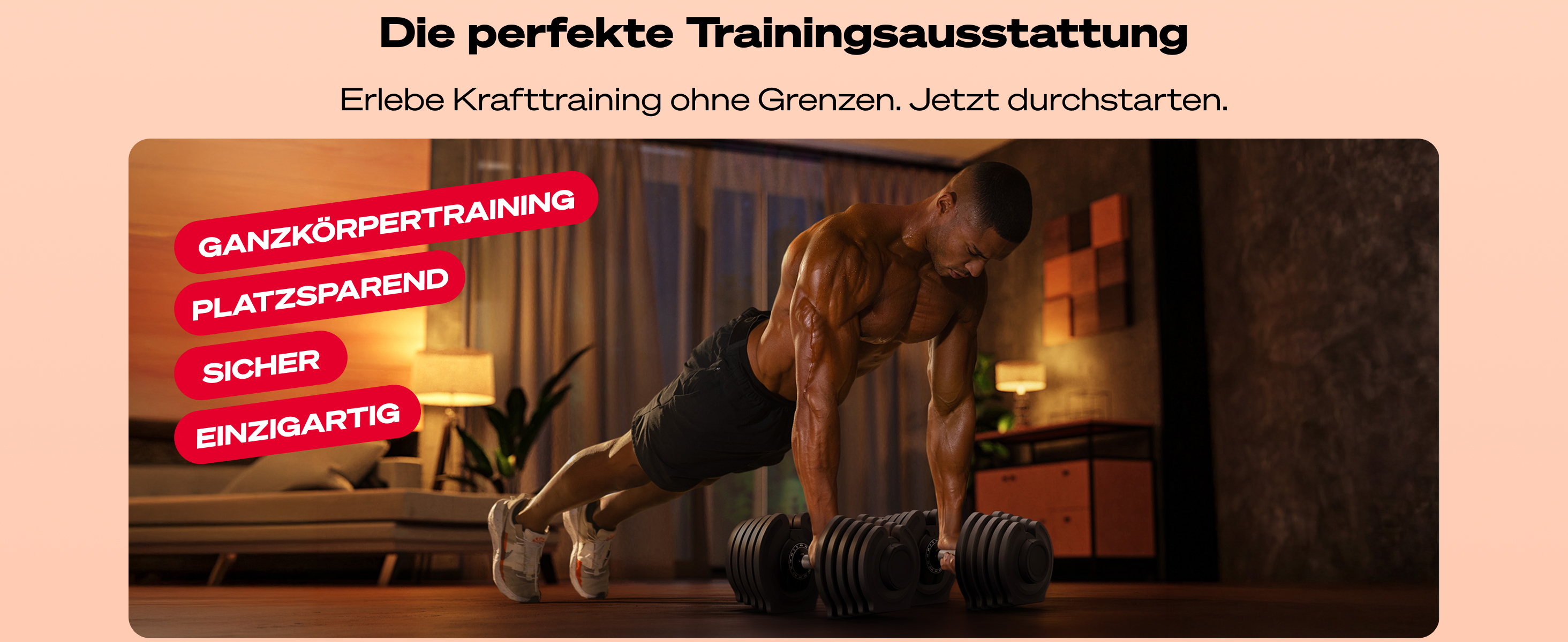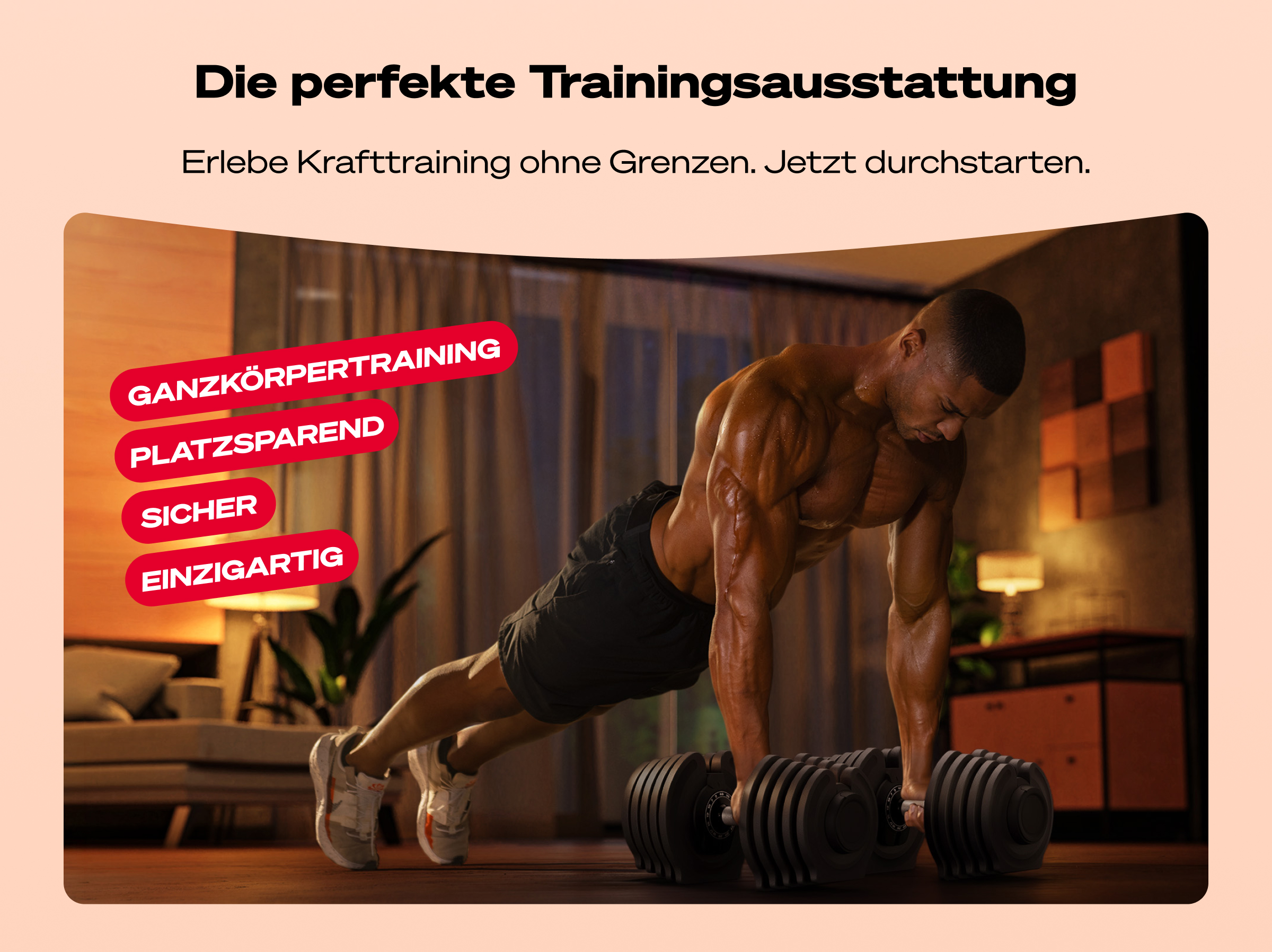 - sehr platzsparend und kompakt, keine losen Hanteln mehr