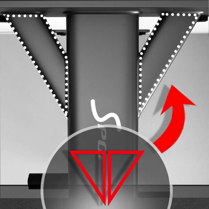 Dank der doppelten Quer- und V-Verstrebung bietet die KS400 extrem viel Halt und ein erhöhtes Sicherheitsgefühl beim Ausführen Ihrer Übungen. Zusätzlich sorgen extra breite Auflageflächen für noch mehr Stabilität und eine große Belastbarkeit. Zudem verteilen sie die auftretenden Kräfte optimal in vier Richtungen.