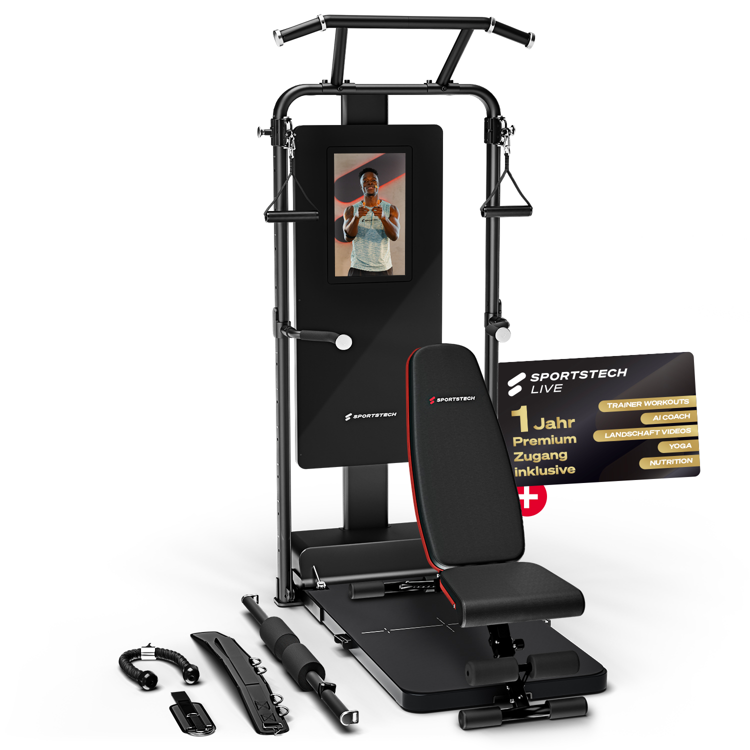 - 1 Jahr kostenlose Sportstech Live Mitgliedschaft inklusive