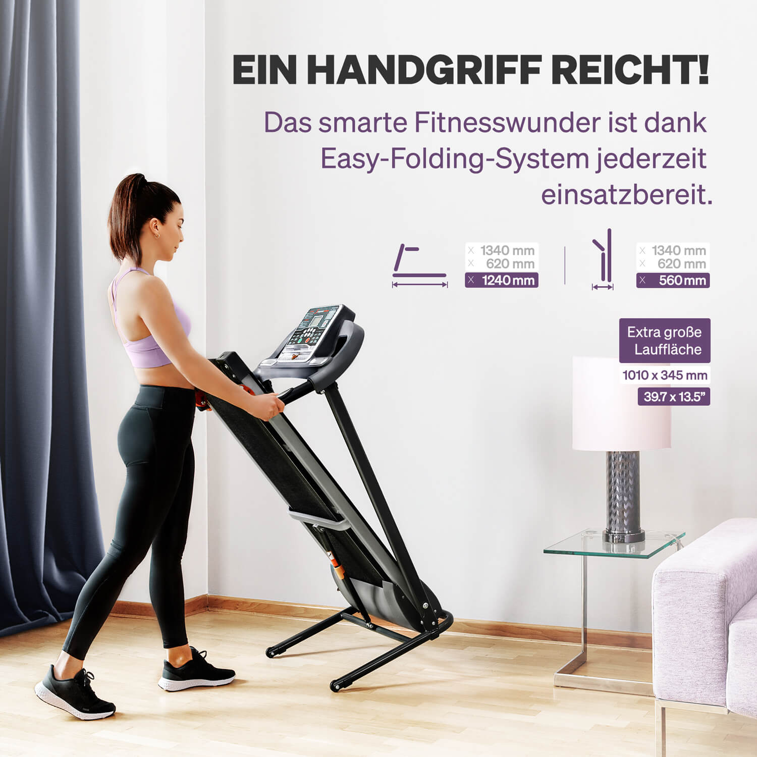 Das Beste am Laufband F10? Die Easy Folding-Funktion – in Sekunden verstaut und jederzeit einsatzbereit.