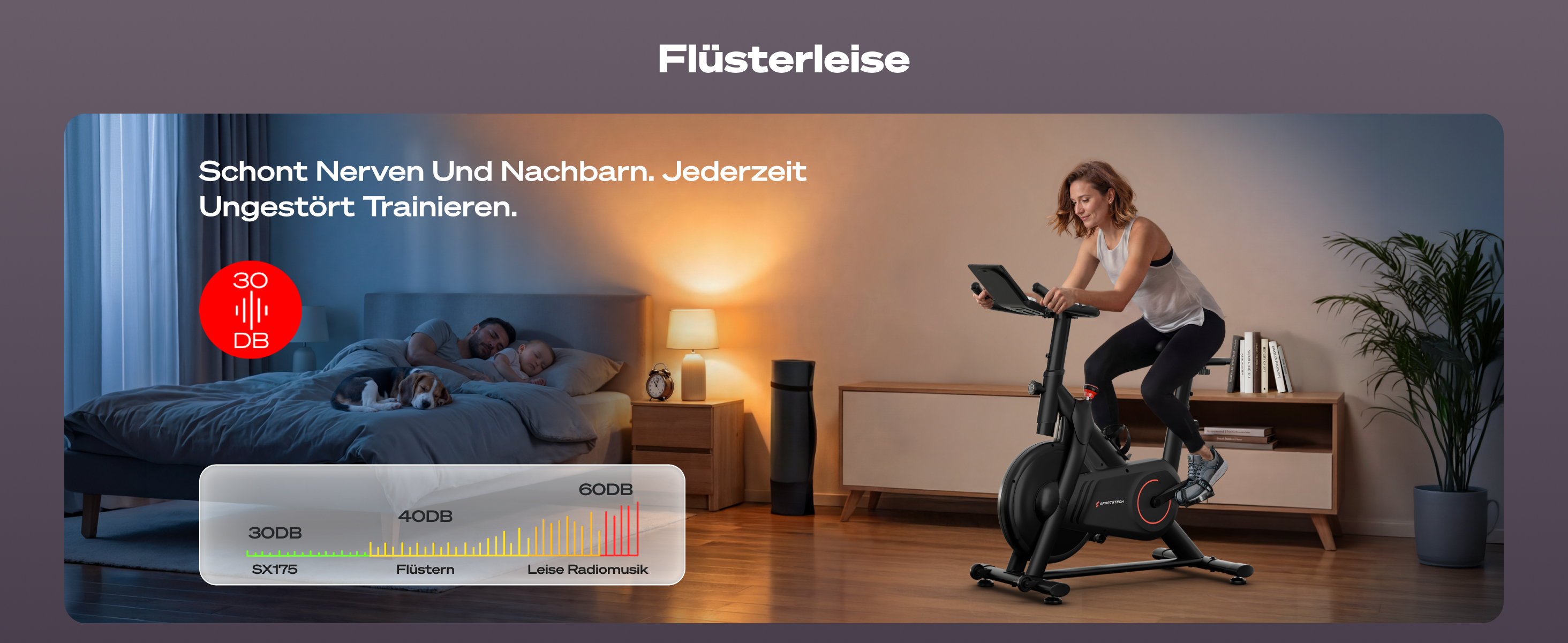 Ja, das SX175 arbeitet mit einem wartungsarmen Magnetwiderstand und ist besonders leise. Dadurch kannst du jederzeit trainieren, ohne andere zu stören.