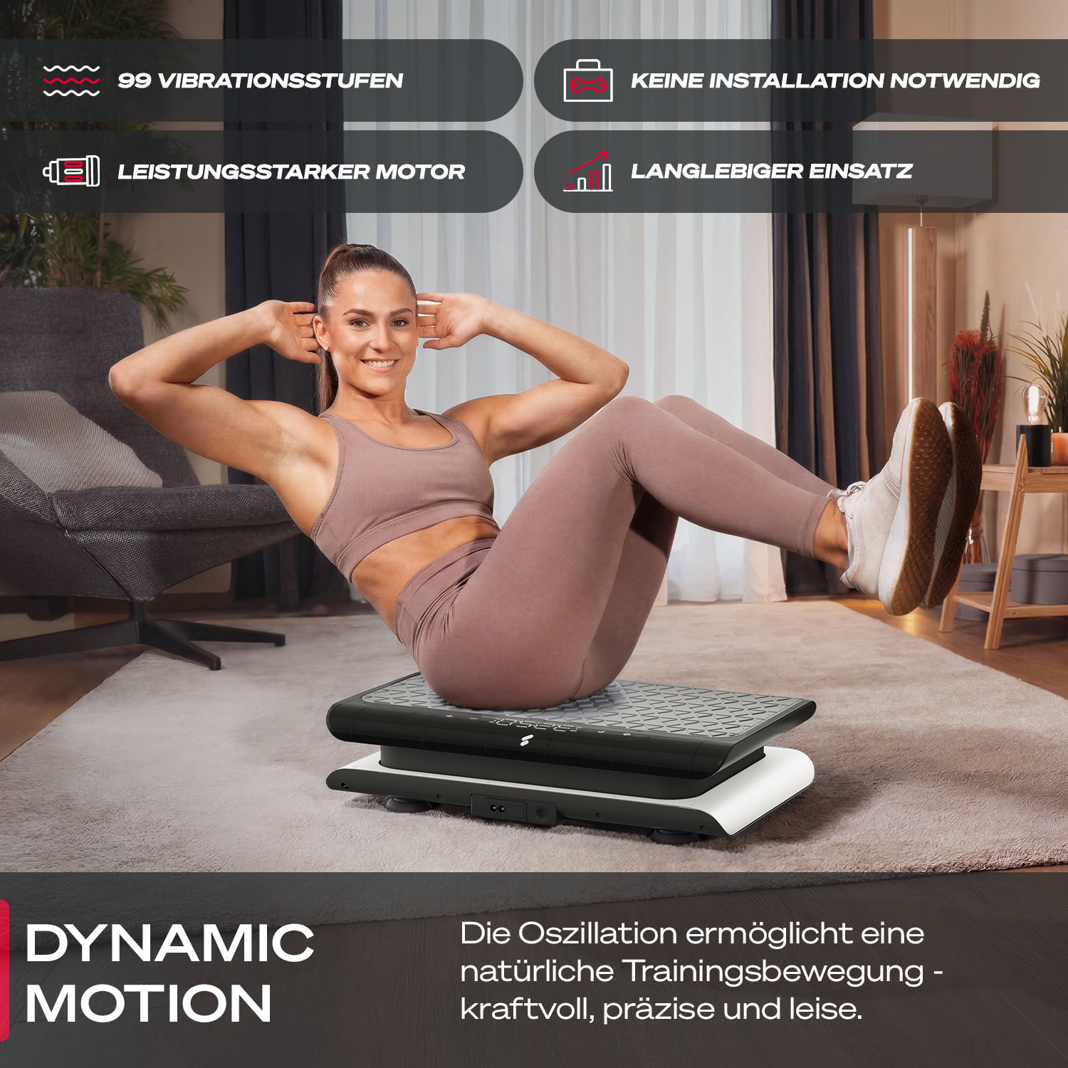 Die sVibe Lite ist eine 2D-Vibrationsplatte mit seitenalternierender Auf-und-Ab-Bewegung, ähnlich einer Wippbewegung. Diese Schwingungen imitieren den natürlichen Bewegungsablauf beim Gehen und werden über die Standfläche auf den Körper übertragen. Dadurch kommt es zu einer gleichzeitigen Aktivierung mehrerer Muskelgruppen, insbesondere der Bein-, Rumpf- und Armmuskulatur. Die sVibe Lite eignet sich somit zur gezielten Muskelaktivierung, zum Fettabbau und zur Stärkung der Ausdauer für ein effektives Ganzkörpertraining Zuhause.