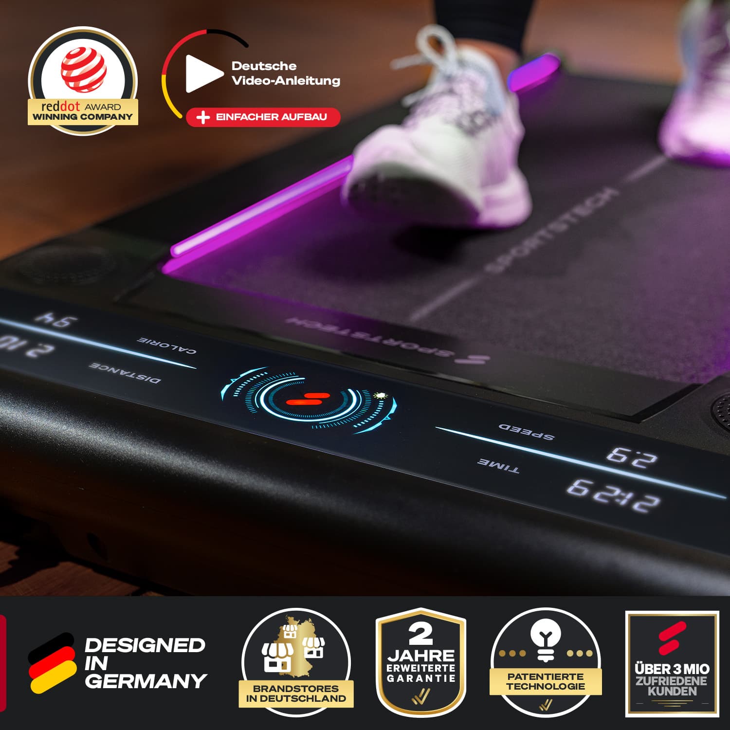 Das Laufband ist kompatibel mit dem "sPulse" von Sportstech. Pairing erfolgt über die App "Sportstech Live".