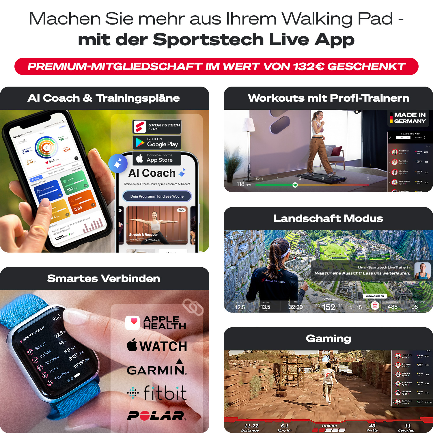Ja, über Bluetooth können Sie Ihre Geräte verbinden, z. B. um die Sportstech Live App zu nutzen.